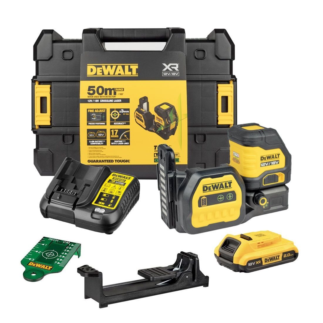 DEWALT DCE088D1G18-GB 12V / 18V XR CROSS LINE GREEN LASER LEVEL KIT INC 1 X 2.0AH BATTERY